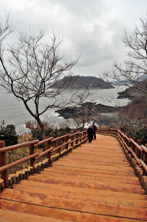 다음에 기다리는 코스는 365계단이다. 바다를 향해 끝없이 이어진 계단에 잠시 심호흡을 해본다. 그리고 하나, 둘 숫자를 세어가며 걸어본다. 숨을 고르느라 숲과 바다가 만들어내는 풍경을 감상하느라 잠시 숫자 세기를 멈추기도 했지만 대충 365가 맞는 것 같다. 360여 개의 가파른 계단을 내려 가다보면 바다가 성큼 눈에 들어온다. 데크 끝에서 잠시 상념에 잠긴 뒤 다시 계단을 거슬러 올라간다.