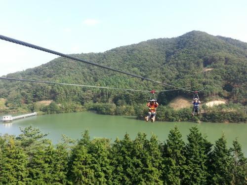 특히 어린이·청소년·일반인용 3개의 체험코스(구간 310m)에서 40개 게임을 즐길 수 있는 ‘어드벤처 시설’과 와이어에 작은 쇠바퀴를 걸어 저수지 위를 건너는 레포츠시설인 ‘짚 라인(Zip line=공중 하강시설)’ (왕복 637m)을 갖췄다.
