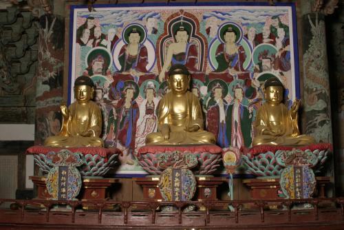 제323호 해남 미황사 목조 석가여래삼불좌상<사진>은 대웅전에 봉안된 목조 삼존불로 조선 후기 17세기 중엽을 대표할만한 불상으로 보존 상태도 양호한 점을 높게 평가받았다.