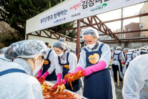 | 광주은행 임직원들은 지난 2017년부터 매년 김장나눔 봉사활동에 동참하고 있다. |