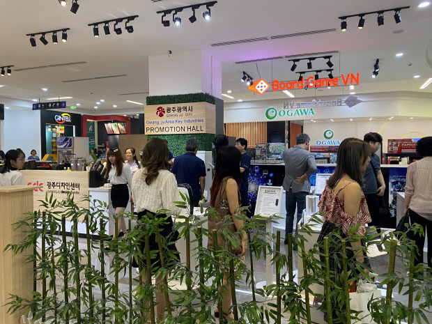 특히 베트남 호치민 최대 쇼핑몰인 ‘반한몰’(VANHANH MALL)에 광주디자인센터 기업홍보관을 개설, 앞으로 3개월간 운영한다. 홍보관에는 ㈜뉴코애드윈드, ㈜아이디어스, ㈜에이스원, ㈜이드엠, ㈜현성오토텍 등 광주 5개 기업 6개 제품이 전시됐다.