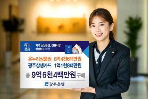광주은행 임직원은 설을 앞두고 이달 한 달 동안 1억1800만원 상당 광주상생카드와 8억4600만원 상당 온누리상품권을 구매하며 지역경제와 전통시장 활성화에 힘을 보탰다. 광주은행은 지난해 추석을 앞두고도 광주상생카드 6억500만원과 온누리상품권 6억4800만원을 구매했다.