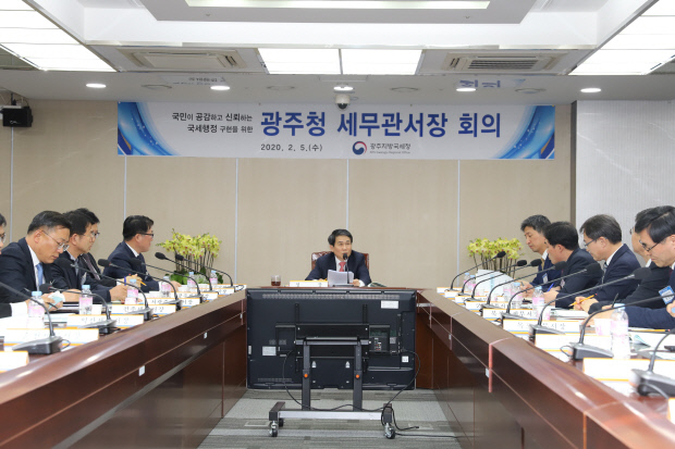 광주지방국세청(청장 박석현)은 지난 5일 청장을 비롯한 지방청 국·과장, 세무서장 등 주요 관리자들이 참여하는 ‘2020년도 광주지방국세청 세무관서장 회의’를 개최했다.