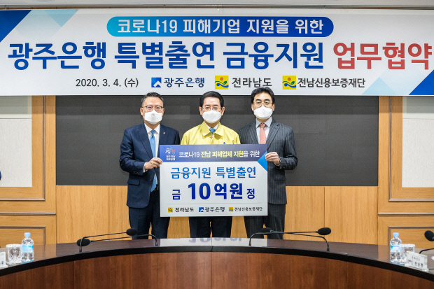 광주은행(은행장 송종욱)은 4일 전남신용보증재단과 ‘코로나19 피해기업 지원을 위한 특별출연 업무협약’을 맺고 10억원을 특별출연했다고 이날 밝혔다. 앞서 광주은행은 광주신용보증재단에 10억원을 특별출연했다.