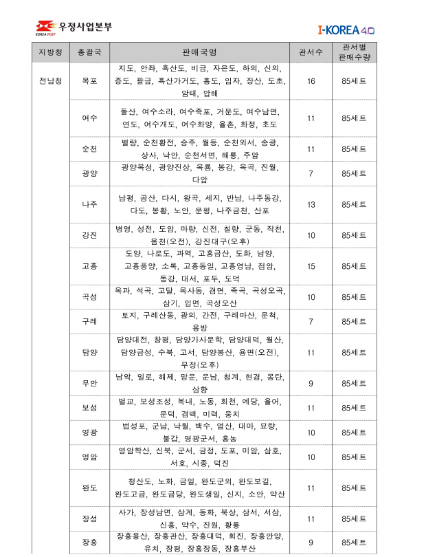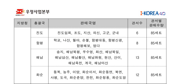 | 공적 마스크 판매 전남 읍·면 우체국 현황.<우정사업본부 제공> |