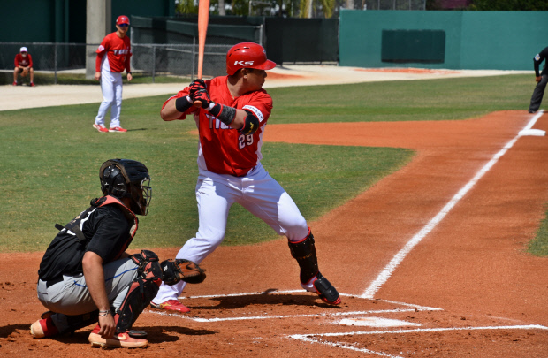 미국 플로리다 스프링캠프 연습경기에서 나지완은 ‘4번 타자’로 역할을 하고 있다.