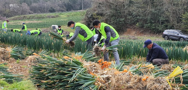 30일 농협 진도군지부와 서진도농협 직원 50여 명은 일손돕기의 하나로 진도 대파밭을 방문해 수확과 손질을 도왔다.