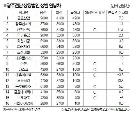 지난해 광주·전남지역 유가증권 상장사 16곳의 여성 직원들은 남성보다 평균 2300만원의 급여를 덜 받은 것으로 나타났다.