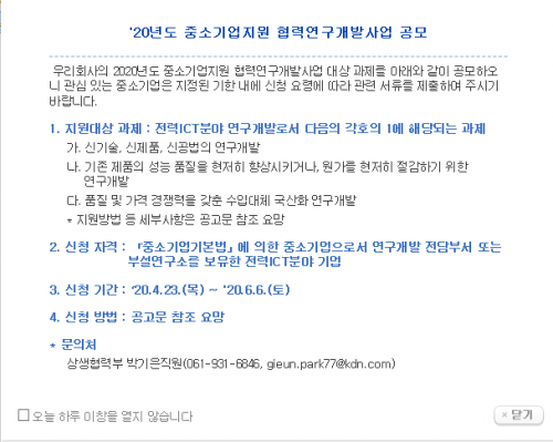 나주 혁신도시에 본사를 둔 한전KDN은 오는 6월6일까지 ‘중소기업지원 협력연구개발사업’ 참여기업을 모집한다고 26일 밝혔다.