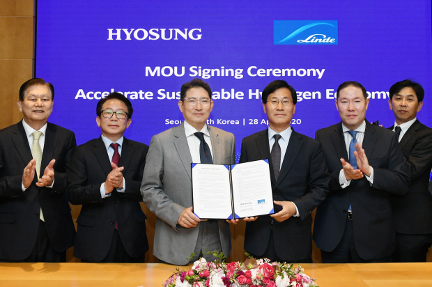 효성은 28일 산업용 가스 전문 세계적 화학기업인 린데그룹과 함께 오는 2022년까지 총 3000억원을 투자해 액화수소 생산과 운송 및 충전시설 설치와 운영을 망라하는 밸류체인을 구축하는 내용의 업무협약(MOU)을 체결했다.