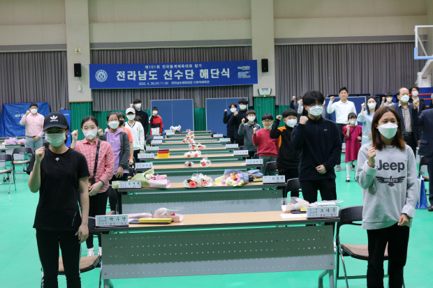 코로나19 여파에 따른 ‘고강도 사회적 거리두기’로 인해 연기됐던 제101회 전국동계체육대회 전남선수단 해단식이 열렸다.