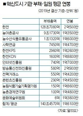 빛가람혁신도시 기관 부채 140조 … 빚잔치 속 임원 월급 올렸다