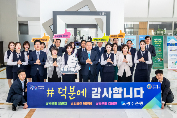 광주은행은 7일 동구 대인동 본점에서 코로나19 의료진에게 감사와 응원을 수어로 전하는 ‘덕분에 챌린지’에 참여했다고 이날 밝혔다.