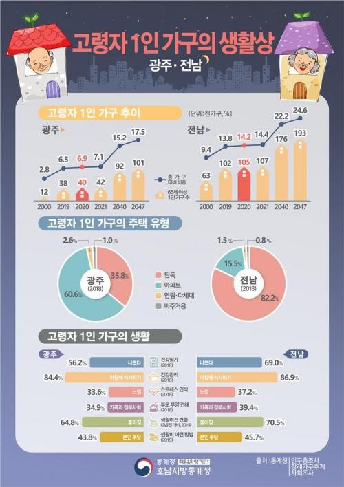 통계청 생활상 발표…광주·전남 65세 이상 1인 가구 15만명