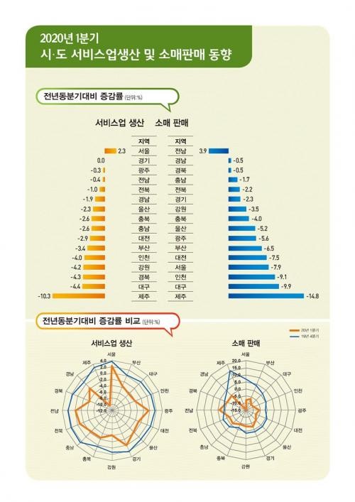 올해 1분기 코로나19 직격탄을 맞은 광주·전남 서비스업이 생산액 통계가 작성된 2010년 이래 첫 ‘마이너스’(-) 성장을 기록했다.