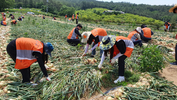 농협 전남지역본부는 지난 29일 ‘1365 자원봉사포털’을 통해 봉사 신청을 한 6명과 함평군 대동면 양파농가에서 수확을 도왔다고 3일 밝혔다. 이날 참가자 중에는 호남대학교, 농협대학교 등 대학생 4명이 포함됐고 전남본부 임직원 50여 명도 힘을 보탰다.