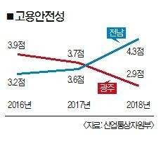 전남 고용 안전성은 3.2점(2016년)→3.6점(2017년)→4.3점(2018년)으로 오름세를 보였다.