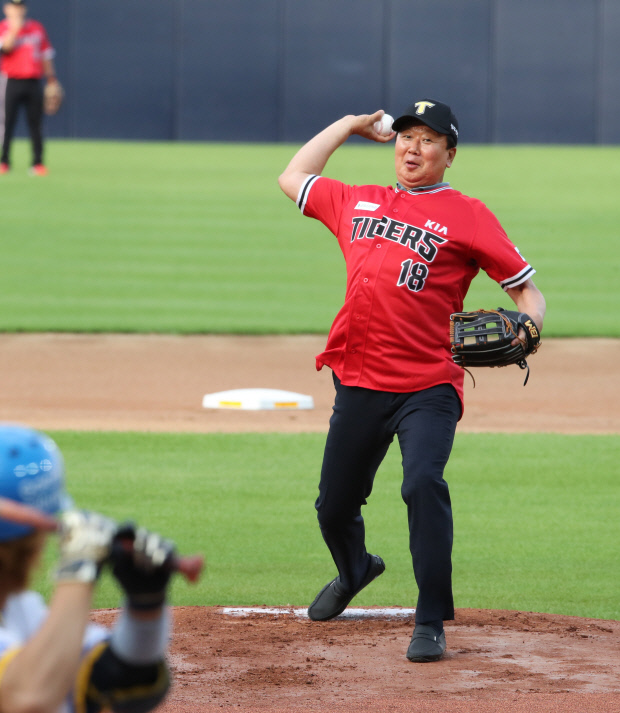 아쉽게 원바운드로 공이 빗나갔지만 선 전 감독에게는 의미 있는 시간이 됐다. 선 전 감독은 “오랜만에 이 곳 챔피언스 필드에 왔다. 많은 추억이 떠오르는 올드 유니폼을 입고 시구하게 돼 감회가 새롭다”며 “비록 관중석에 팬 여러분은 안 계셨지만, 중계방송으로 함께 해주셨을 거라 생각한다. 팬들과 함께 저도 선수들을 열심히 응원하겠다”고 소감을 밝혔다.
