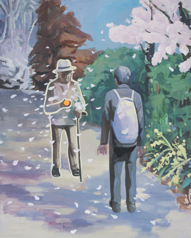 또한 고차분의 ‘여름해변’과 ‘여름휴가’(2020)는 이즈음의 해변풍경을 색면추상처럼 단순화시켜 표현한 연작이다. 백사장과 수면공간의 비율이 달리 적용되긴 했지만 넓고 간결한 채색, 잔잔히 비치는 붓질 흔적들, 피서객들처럼 백사장을 점점이 채운 기호 같은 집들은 삶에서 ‘집’이 갖는 복합적 의미와 함께 시공간을 초월한 주관적 해석으로 평온하고 차분한 정겨움을 보여준다.