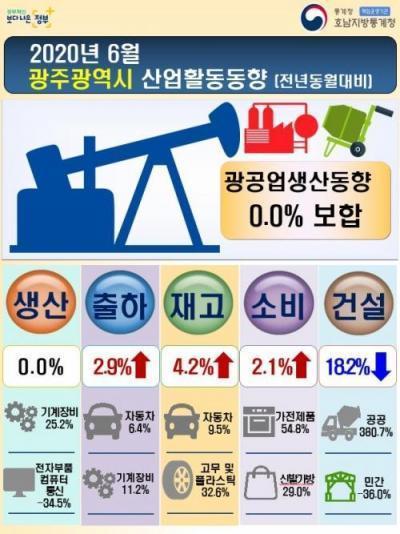 광주지역 광공업 생산은 지난 4월 18.4%, 5월 23.8% 두 달 연속 급감한 뒤 첫 보합세를 보였다.