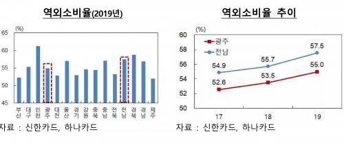 광주·전남 지역민이 역외에서 돈을 쓰고 오는 비율은 해마다 커지고 있다.