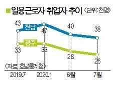 7월 광주·전남 일용근로직 취업자 한 달 새 4000명 급감