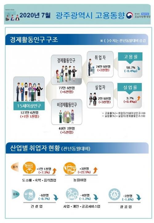 광주 취업자 수는 74만9000명으로 1년 전보다 2000명(0.3%) 늘었다.