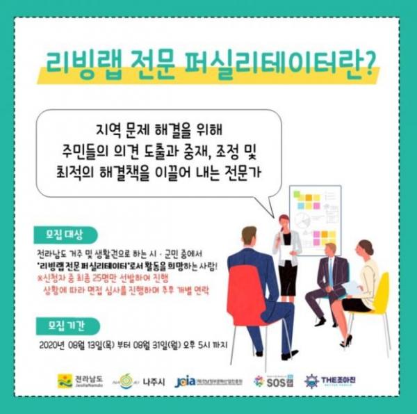 전남정보문화산업진흥원은 이달 말까지 전남지역 리빙랩 전문 퍼실리테이터 양성과정 수강생을 모집한다고 20일 밝혔다.