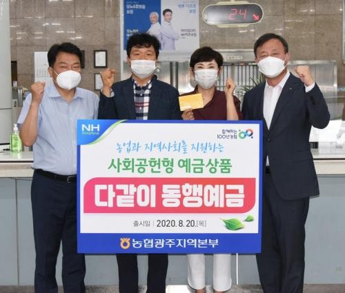 농협 광주지역본부는 예금상품 ‘다 같이 동행 예금’ 출시를 기념해 지난 20일 광주 1호 가입행사를 가졌다고 23일 밝혔다.