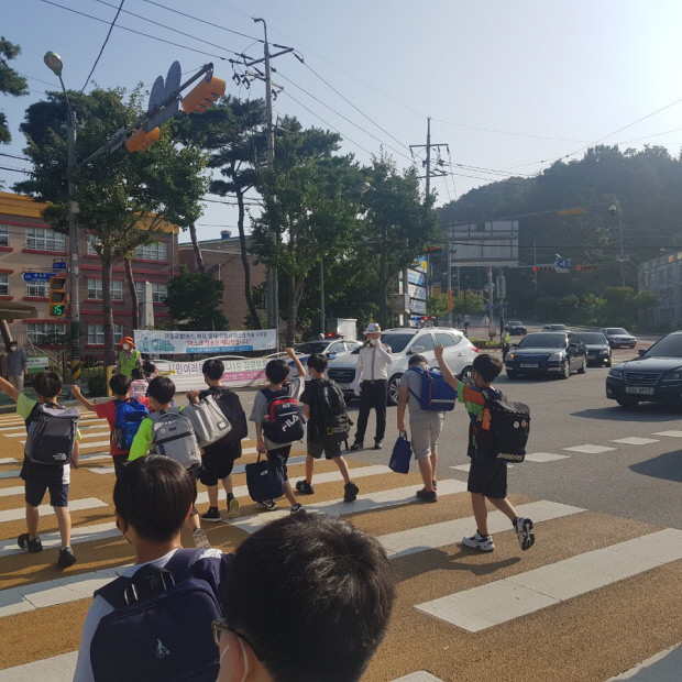 캠페인은 등교시간에 맞춰 안전한 통학로를 조성하기 위해 어린이들을 대상으로 횡단보도 보행지도를 실시했다.