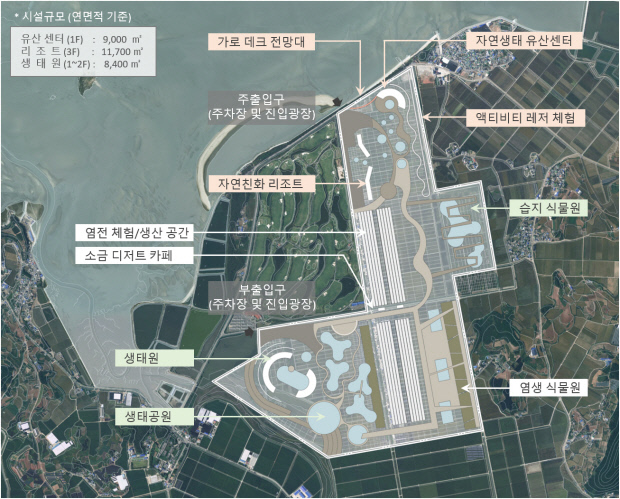 이 사업은 1단계로 오는 2024년까지 ‘갯벌세계유산센터’를 건설한다. 2단계는 염생식물원, 자연생태원, 소금 관련 6차 산업화 단지를 조성한다. 이후 순차적으로 생태공원과 생물원 등이 들어설 예정이다.