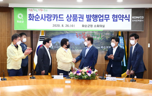 화순군도 조폐공사와 손잡고 카드형 화순사랑상품권을 발행한다. 이를 위해 양 기관은 지난달 26일 협약식을 했다.