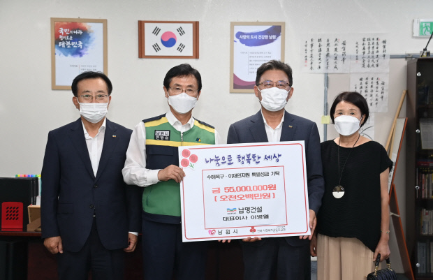남원시는 건설업체인 남명건설이 수재 의연금 5500만원을 맡겨왔다고 6일 밝혔다.