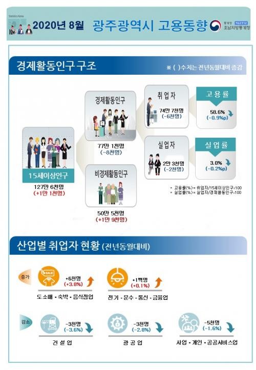 호남지방통계청 발표 ‘8월 광주·전남 고용동향’
