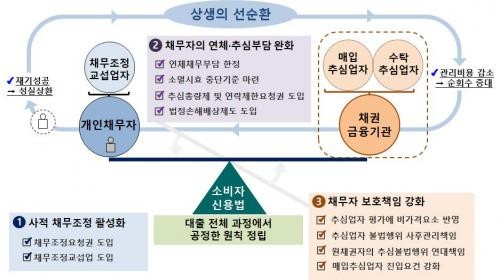 소비자신용법 제정안은 채권자·추심자의 채무자 보호 책임을 강화하고 채무자의 방어권을 확대하는 내용을 골자로 하고 있다.