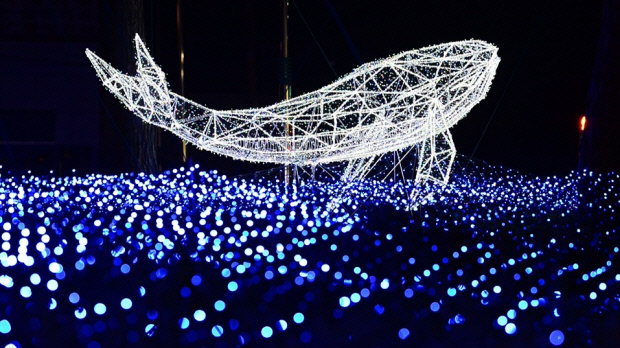 특히, 푸른 바다를 연상시키는 넓게 펼쳐진 은하수 조명 위에 흰색으로 밝게 빛나며 솟구치는 고래 조형물은 경이로움과 함께 코로나19로 지쳐가는 일상에서 벗어나 상상의 나래로 떠나는 꿈을 꾸게 한다.