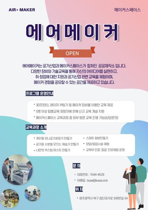 광주시 북구 오룡동에 있는 재단법인 한국공기안전원은 시제품 제작공간인 ‘메이커 스페이스’ 주관기관으로 선정돼 이달 본격 운영에 들어갔다고 22일 밝혔다.
