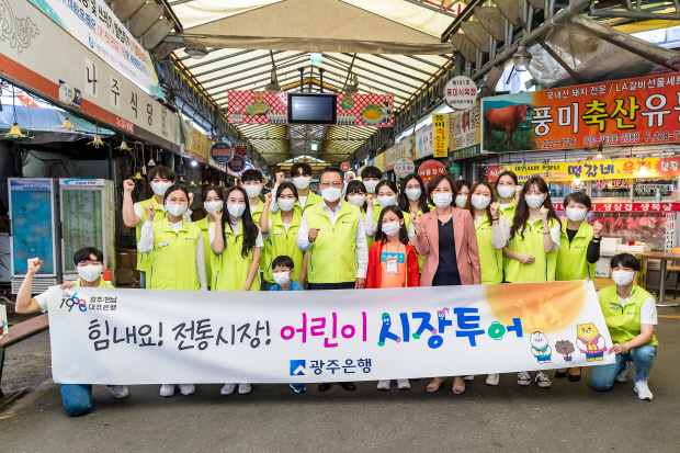 | 광주은행은 28일 동구 대인시장에서 어린이들과 추석 장을 함께 보고, 지역 결손가정과 그룹홈에 온누리상품권 1000만원을 전달했다. |