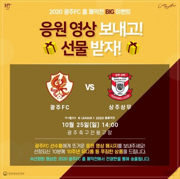 광주는 총 10명의 영상 주인공을 선정해 선수단 사인 유니폼(2명), 니트 머플러(3명), 옥스퍼드 블록(5명) 등을 선물한다.