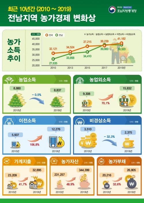 전남 농가부채 2700만원…10년 새 690만원↑