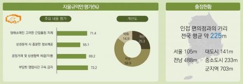 광주·전남·전북 지역에서는 근접출점 자제 규약을 잘 지키고 있다는 답변이 73.2%로, 전국 평균(71.4%) 수준을 지켰다. 하지만 잘 지키고 있지 않다는 답변도 18.1%로 나타났다.