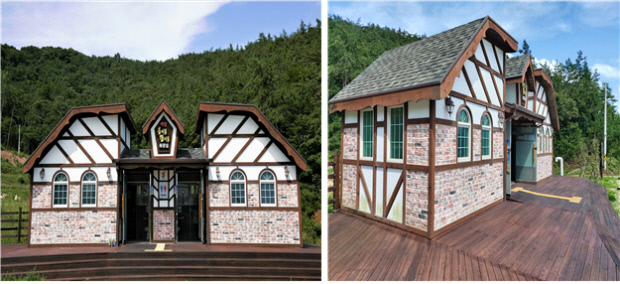 화장실 외부는 유럽풍의 주택모형을 표현했으며, 자연채광으로 쾌적하고 안락한 환경의 화장실로 이용자들의 만족도를 높이고 있다.