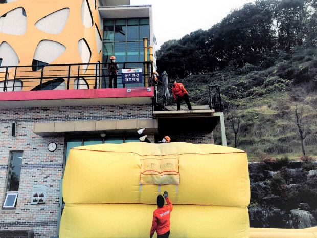 나주 혁신도시에 본사를 둔 사립학교교직원연금공단은 지난 27~28일 나주 본사 등에서 ‘2020 재난대응훈련’을 열고 전 임직원이 화재대피·소화기 사용 훈련을 했다. <사학연금 제공>