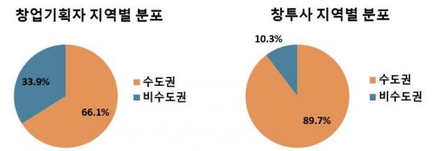 창업기획자 시·도별 등록현황을 보면 서울(147개), 경기(31개), 인천(9개) 등 수도권 비중이 전체의 65.8%에 달한다. 나머지 지역 비중은 34.2%(97개)이다.