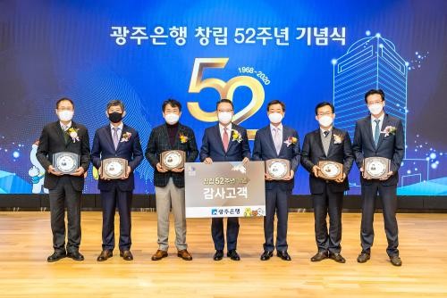 광주은행은 이날 동구 대인동 본점에서 창립 52주년 기념식을 열고 고객 감사패 증정과 우수직원 표창 등을 진행했다고 22일 밝혔다.
