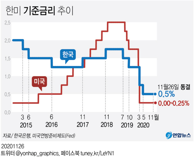 한은 금융통화위원회는 현재 연 0.5%인 기준금리를 유지하기로 26일 결정했다.