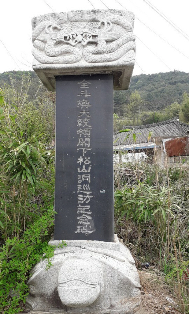 철거된 기념비는 전두환 당시 대통령이 1983년 1월2일 송령마을을 방문한 기념으로 2년 뒤인 1985년 1월에 세워졌다.