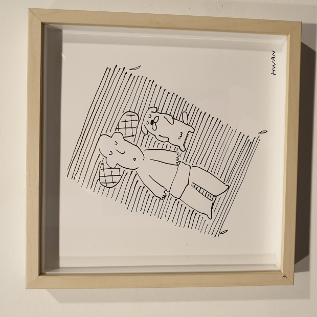 1전시실에서 만나는 ‘별: 착한 사람들이 사는 마을엔 별이 땅 위로 뜬다’는 작가가 전라도와 지리산 주변 시골마을을 지날 때의 느낌을 그린 것으로 따뜻한 위로를 주는 작품이다. 드로잉 작품 연작 시리즈는 코엘료와 함께 낸 책 ‘마법의 순간’ ‘마크툽’에 실었던 그림을 2020년 일러스트레이션페어에 출품하며 다시 그린 작업 일부와 최근 작가에게 영감을 주고 있는 반려견 ‘밀루’를 그린 그림, 내년 펴낼 예정인 에세이집에 들어갈 신작이다.