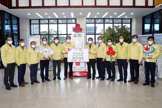유진섭 시장과 곽승기 부시장을 비롯한 5급 이상 간부 공무원 71명은 지난 7일 어려운 이웃이 따뜻하게 겨울을 보낼 수 있도록 ‘희망2021 나눔 성금’ 1610만원을 기탁했다.