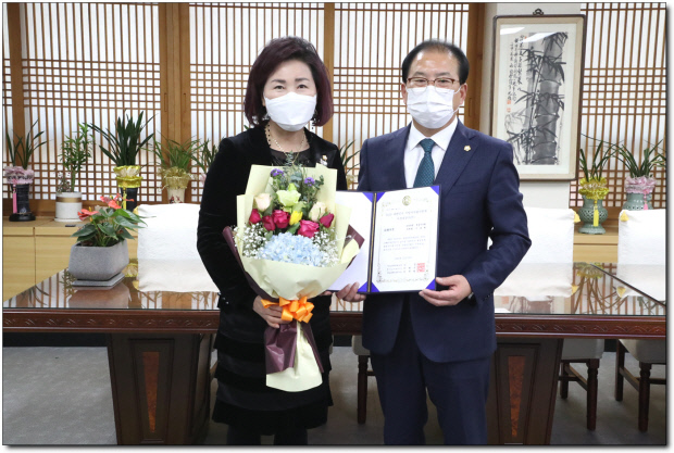 정읍시의회 이남희(왼쪽) 의원이 최근 여의도정책연구원이 선정한 ‘2020 대한민국 지방자치평가 연계 의정대상’ 최우수상을 수상했다.